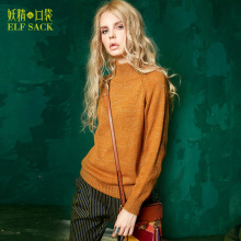 妖精的口袋B拒绝孤独春装欧美复古宽松打底金线小高领套头毛衣女