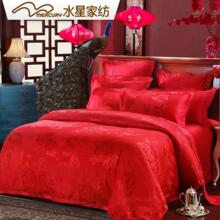 水星家纺大提花婚庆四件套 大红结婚套件 牡丹颂 送靠垫套2只