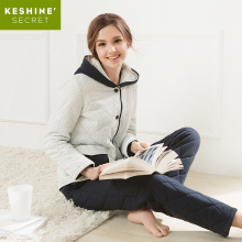 卡绚2017冬季加厚睡衣女连帽夹棉家居服套装 时尚圆点印花居家服