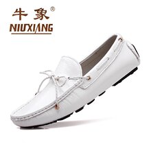 牛象夏季豆豆鞋男牛皮单鞋透气英伦休闲鞋 韩版帆船鞋青年驾车鞋
