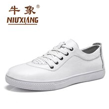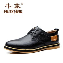 牛象夏季男款休闲鞋牛皮软面皮潮男鞋子系带青年男士韩版休闲皮鞋