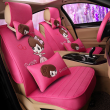 汽车座套女四季通用亚麻可爱卡通本田crv缤智凌派飞度锋范xrv思域