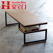 LOFT美式乡村铁艺实木茶几简约复古创意茶桌做旧长方茶台客厅边几