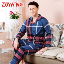 佐雅睡衣男士秋季纯棉休闲简约长袖格子大码家居服套装可外穿春秋