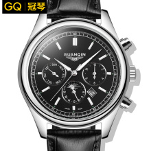 冠琴正品 多功能运动男士手表 真皮带防水时尚石英表 复古休闲表