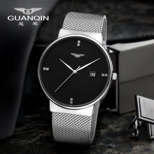 冠琴 正品男士手表时尚商务简约石英表 精钢防水双日历皮带腕表男