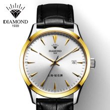 上海钻石牌手表男皮带石英表超薄款休闲大表盘防水男士时尚手表