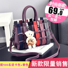 女包2017新款韩版潮女士包包单肩包休闲手提包斜挎包百搭编织小包