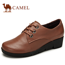 Camel骆驼女鞋中年坡跟系带单鞋浅口厚底女秋季妈妈鞋休闲鞋