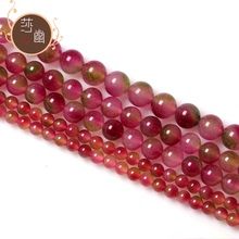 DIY饰品材料 西瓜碧玺色 玛瑙半成品散珠子(此款为加色玛瑙)