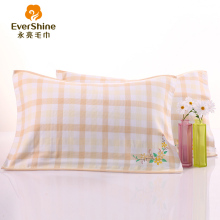 [2条装]永亮纱布纯棉枕巾 格子男女情侣成人柔软透气一对枕头巾