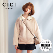 CICISHOP2017冬装新款日系甜美百搭羊羔毛麂皮绒短款厚外套女6030