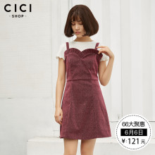 CICISHOP2017夏季新品吊带连衣裙甜美可爱大摆时尚连衣裙女6556