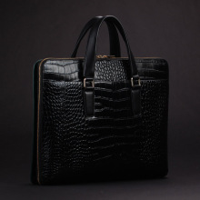 兰琦新款时尚真皮男包男士手提商务包公文包鳄鱼纹头层牛皮定型包