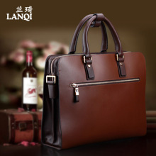 兰琦正品 精品男包牛皮 新款男士商务手提包 公文包单肩包竖款