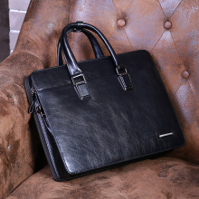 兰琦头层牛皮男士手提包横款真皮商务男包公文包大黑色斜挎单肩包