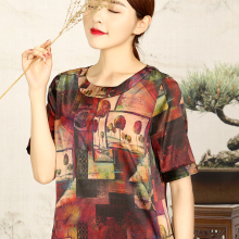 真丝古朴印花连衣裙春夏季新款高端宽松大码显瘦桑蚕丝女装中长款