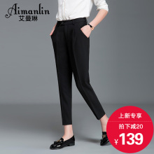 艾曼琳2017新款春装休闲裤女小脚裤铅笔裤大码通勤西裤黑色长裤