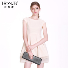 HONB红贝缇2016夏季新款连衣裙无袖圆领拼接短款裙子L6J2025