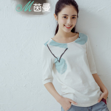 买2送1茵曼女装新款百搭纯棉清新文艺范印花长袖T恤女式上衣