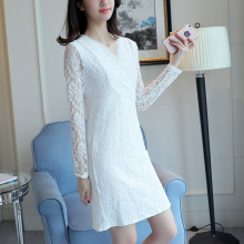 2017时尚春装新款女士打底衫长袖春季蕾丝中长款内搭镂空韩版白色