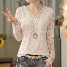 蕾丝打底衫女长袖秋冬2017新款女装V领上衣镂空春秋装韩版小衫潮