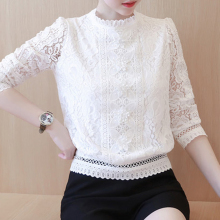 长袖蕾丝打底衫2017新款女装韩版百搭立领上衣服春秋装小衫宽松潮