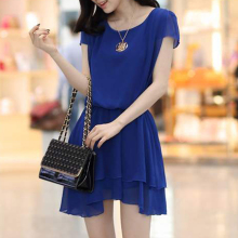 香仙妃夏装新款连衣裙韩版大码女装宽松修身显瘦短袖雪纺裙打底裙
