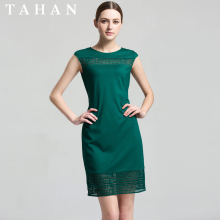 TAHAN太和夏季新款薄收腰显瘦镂空拼接无袖针织连衣裙TAF21E115
