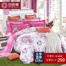 百思寒全棉四件套纯棉贡缎田园风被套1.8m单人双人床单被罩