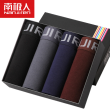 南极人男士内裤 中腰棉质透气平角裤 四角内裤男短裤头4条礼盒装