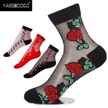 女士夏季丝袜黑色超薄棉丝袜中腰水晶丝绣花日系玻璃丝袜子防勾丝
