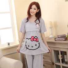 夏季月子服薄款哺乳睡衣圆领短袖针织棉孕妇睡衣家居服短裤套装