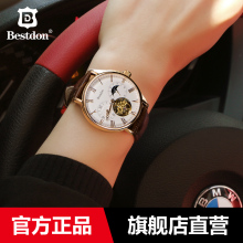 邦顿正品手表女士白色陶瓷女表全自动机械表时尚防水镂空手表女