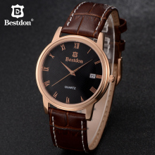 邦顿男女士手表真皮带女表石英表日历复古简约时尚潮防水情侣腕表