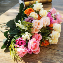 小玫瑰仿真干花假花绢花人造花艺客厅摆设花卉欧款情人玫塑料花束