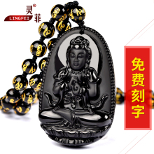 开光黑曜石十二生肖本命佛吊坠大日如来普贤文殊虚空臧菩萨项链男