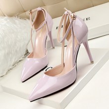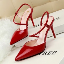 韩版时尚显瘦性感镂空后绊带细跟高跟漆皮浅口尖头单鞋女鞋高跟鞋