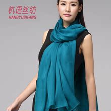 孔蓝色杭州桑蚕丝围巾女纯色百搭长款真丝丝巾纱巾春秋冬夏季披肩