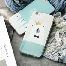苹果6s手机壳 可爱卡通皇冠北极熊iPhone6 plus硅胶彩绘浮雕软套