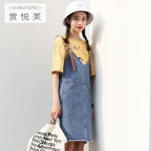 学生牛仔背带裙女2017新款韩版宽松春夏季V领连衣裙吊带中裙潮