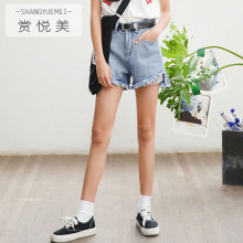 赏悦美2017春装新款韩版显瘦牛仔短裤女夏 水洗毛边高腰不规则