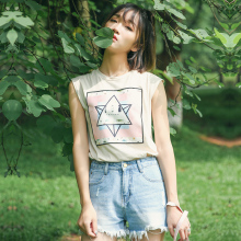 2017夏季新款韩版宽松女学生短袖t恤百搭无袖潮流圆领印花T恤均码