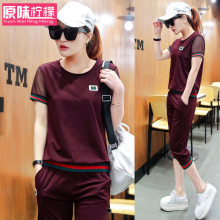 运动套装女春夏2017夏休闲时尚短袖七分裤修身显瘦女纯棉运动服潮