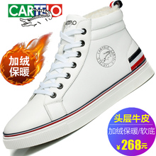 卡帝乐鳄鱼男鞋真皮冬季板鞋高帮加绒棉鞋保暖短靴男士休闲雪地靴