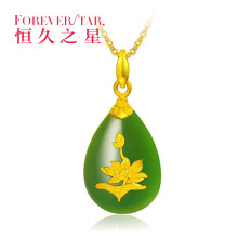 恒久之星 现货足金新疆和田玉吊坠 女款碧玉坠天然玉石项坠