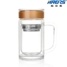 哈尔斯 双层玻璃水杯子 男女士办公茶杯 防烫透明带茶隔