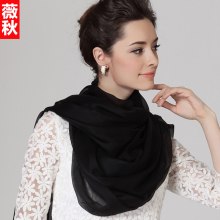 薇秋季纯色披肩百搭韩版桑蚕丝真丝丝巾女纯黑色夏季春秋防晒围巾