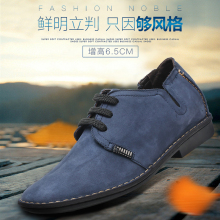 何金昌隐形增高男鞋磨砂皮鞋青年潮鞋系带休闲鞋低帮鞋内增高鞋男