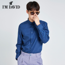 imdavid爱大卫长袖亚麻衬衫男士修身款春秋翻领衬衣外穿DQWS31B3